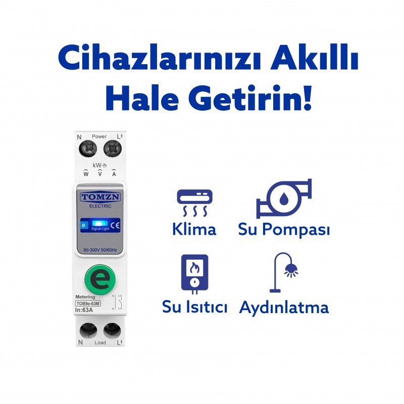 Tomzn Akıllı Voltaj ve Akım Koruma Rölesi, WiFi Özellikli Dahili Enerji Ölçer 63A eWelink Uyumlu