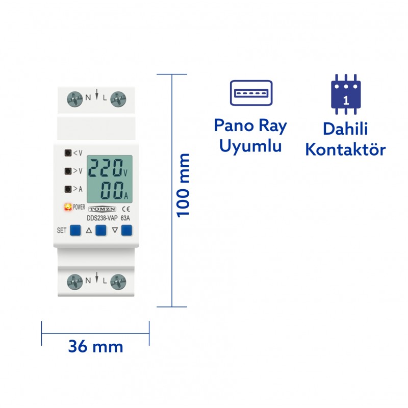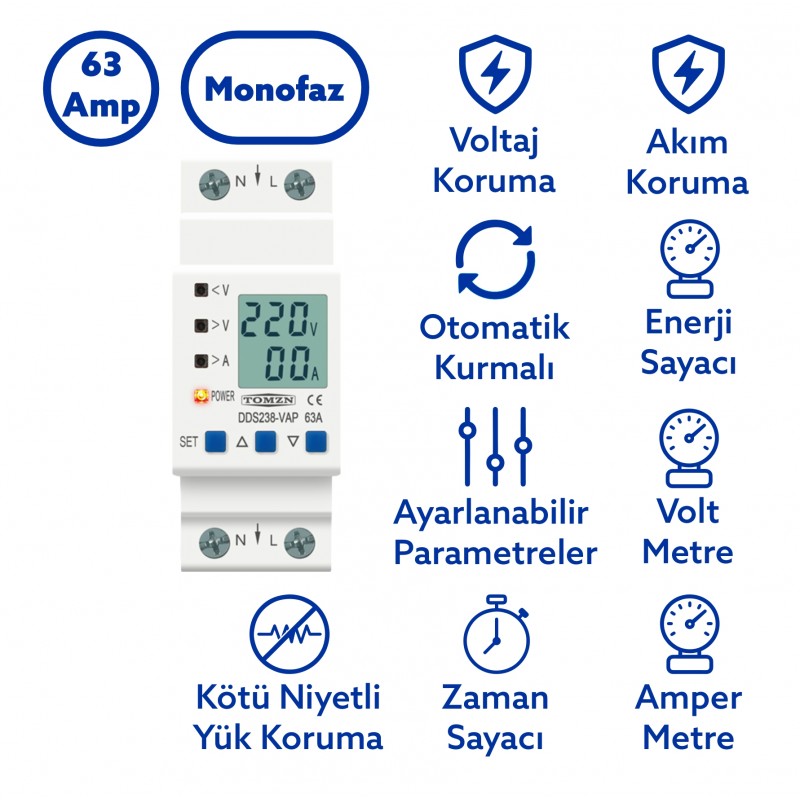 • Tomzn Hiking Voltaj ve Akım Koruma Rölesi Yüksek Alçak Gerilim ve Akım Koruyucu Röle 63A