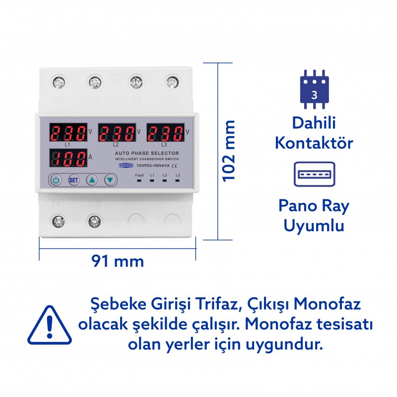 Tomzn Otomatik Faz Seçici Ve Yüksek Alçak Voltaj Akım Koruma Rölesi 220v 100A