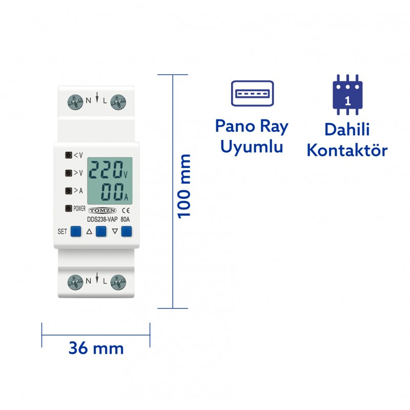 Tomzn Hiking Voltaj ve Akım Koruma Rölesi Yüksek Alçak Gerilim ve Akım Koruyucu Röle 80A