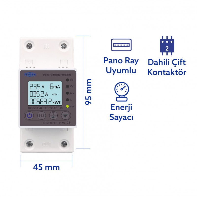 • Tomzn Kaçak Akım Koruma Rölesi Ve Yüksek Voltaj Ve Akım Koruyucu Röle 80A Devrimsel Yenilik