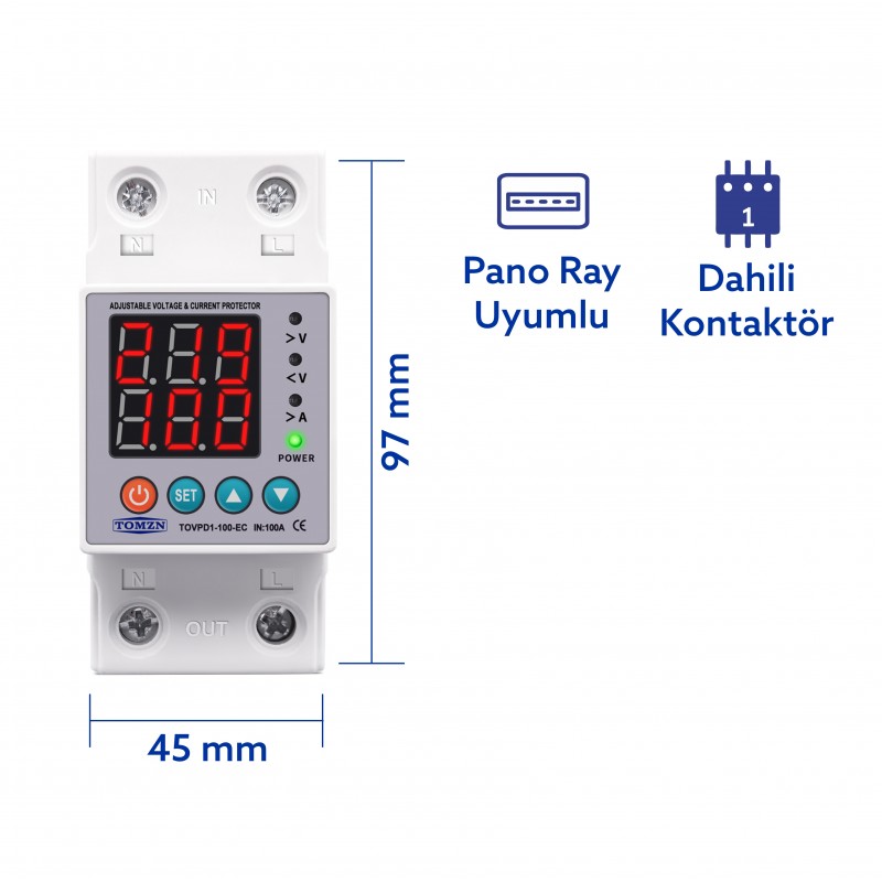 TOMZN Gerilim Koruma Rölesi Yüksek Alçak Voltaj Akım Koruma 100A Dahili Kontaktör Voltmetre Gerilim ve Akım Koruyucu Röle