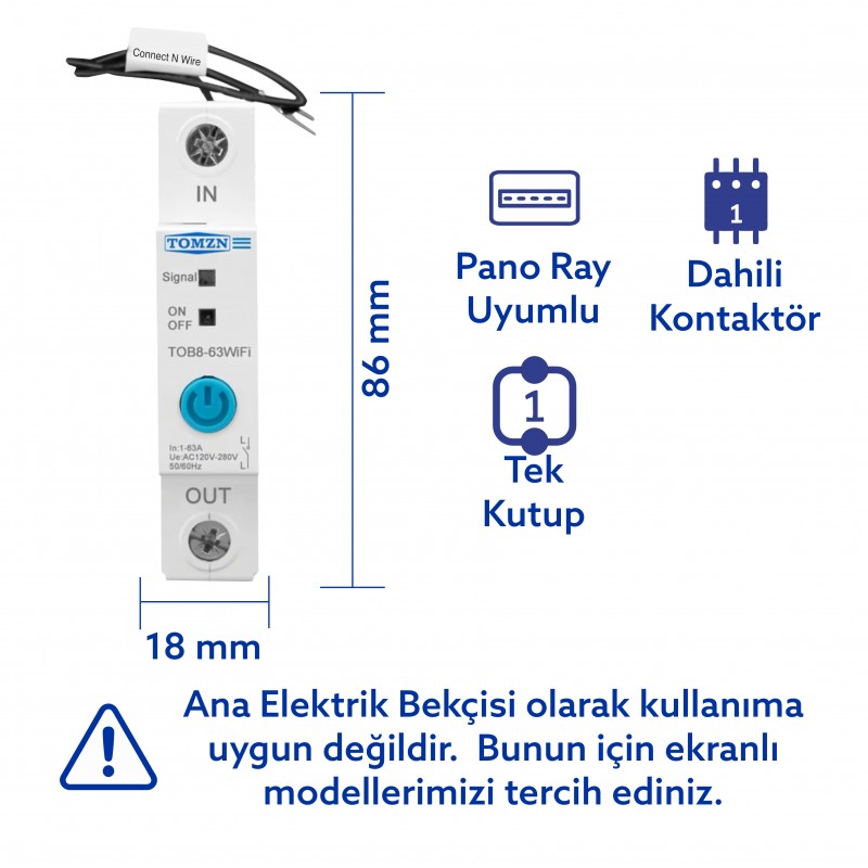 Tomzn WiFi Akıllı Voltaj ve Akım Koruma Rölesi, Dahili Enerji Ölçer 63A eWelink Uyumlu - Tek Kutup