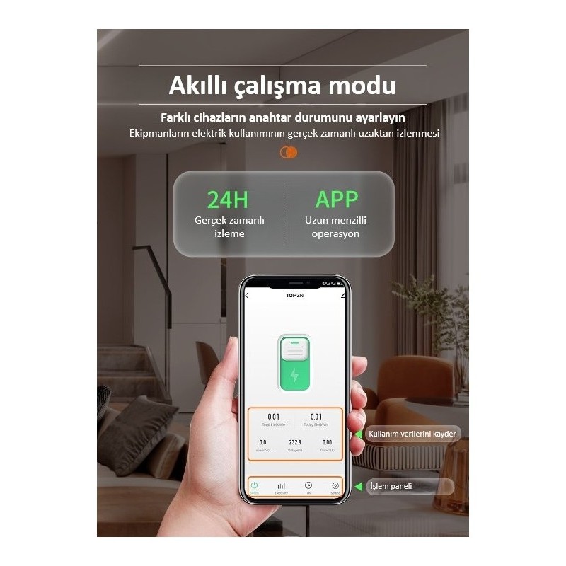 Tomzn WiFi Özellikli Akıllı Sigorta Dahili Enerji Ölçerli Zaman Rölesi 63A