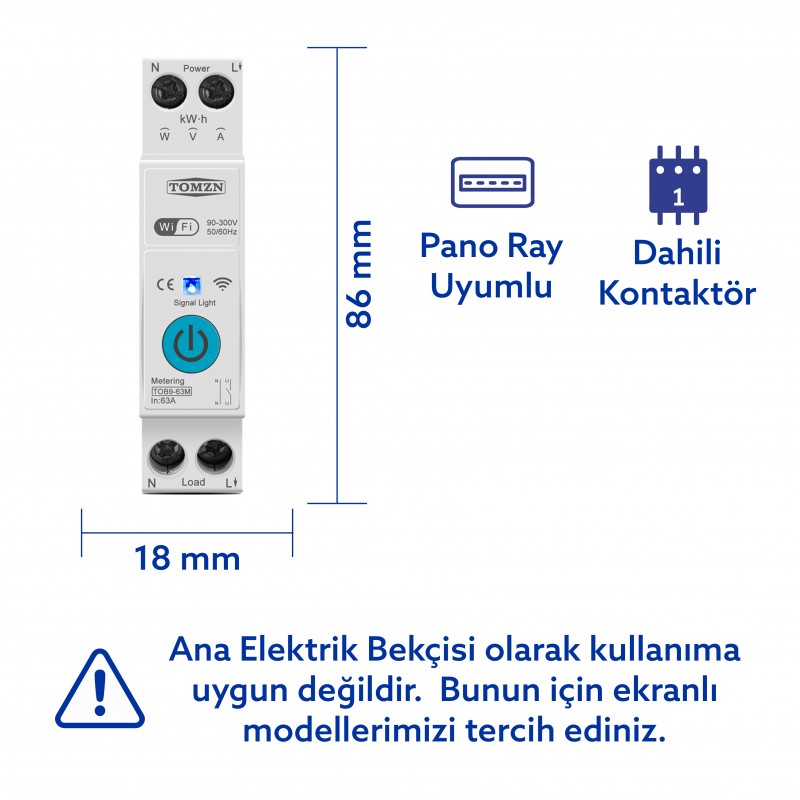 • Tomzn WiFi Özellikli Akıllı Sigorta Dahili Enerji Ölçerli Zaman Rölesi 63A