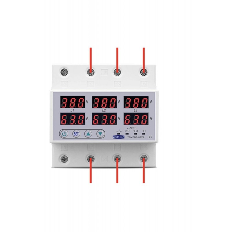 Tomzn Trifaz 380V 100A Gerilim ve Akım Koruma Rölesi Yüksek Alçak Voltaj Koruyucu Röle - Sanayi Tipi